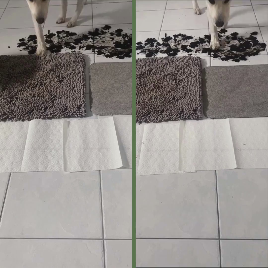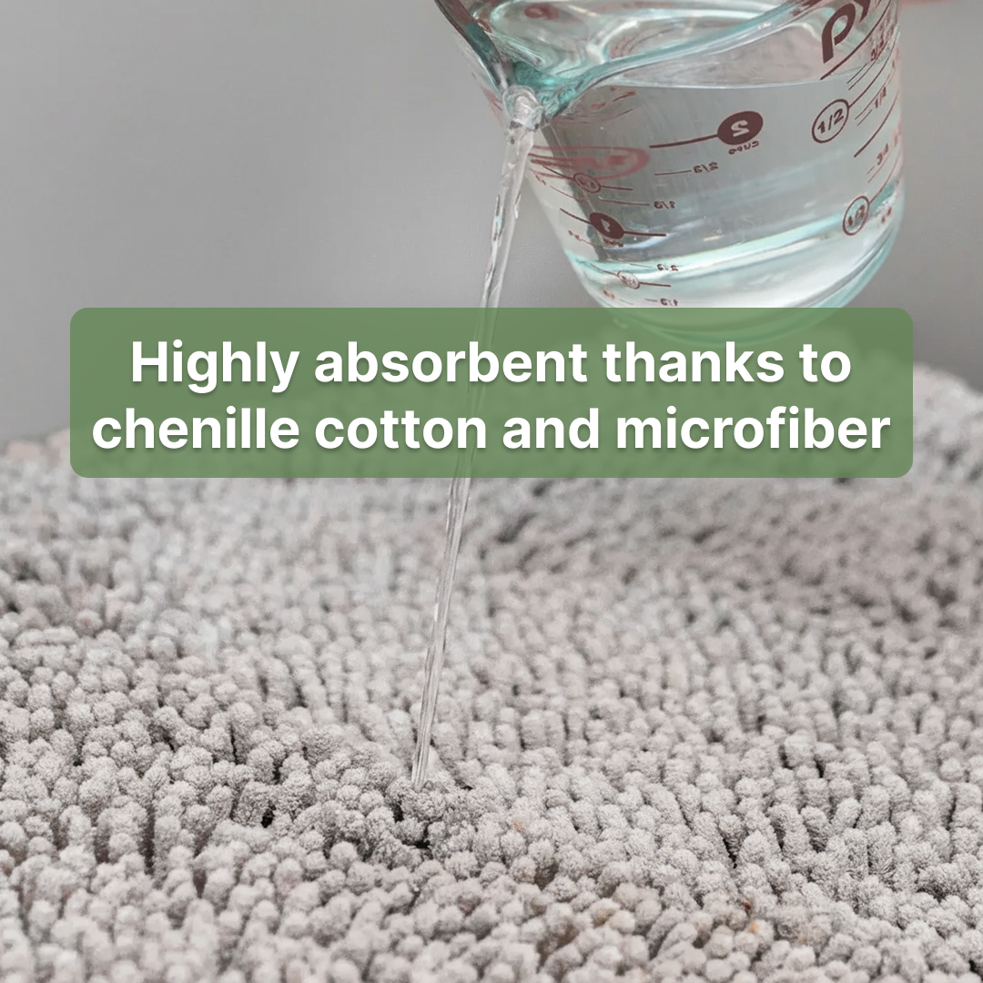 Thanks to the higher fibers, coarse and fine dirt hidden between the paws is removed, while the absorbent and soft chenille material absorbs moisture from the paw.